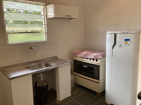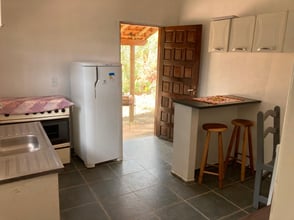 Casa com 01 quarto: 01 cama de casal, 01 beliche e 01 cama de solteiro/ cozinha com mobília básica, banheiro, churrasqueira, piscina compartilhada, acomoda até 05 pessoas